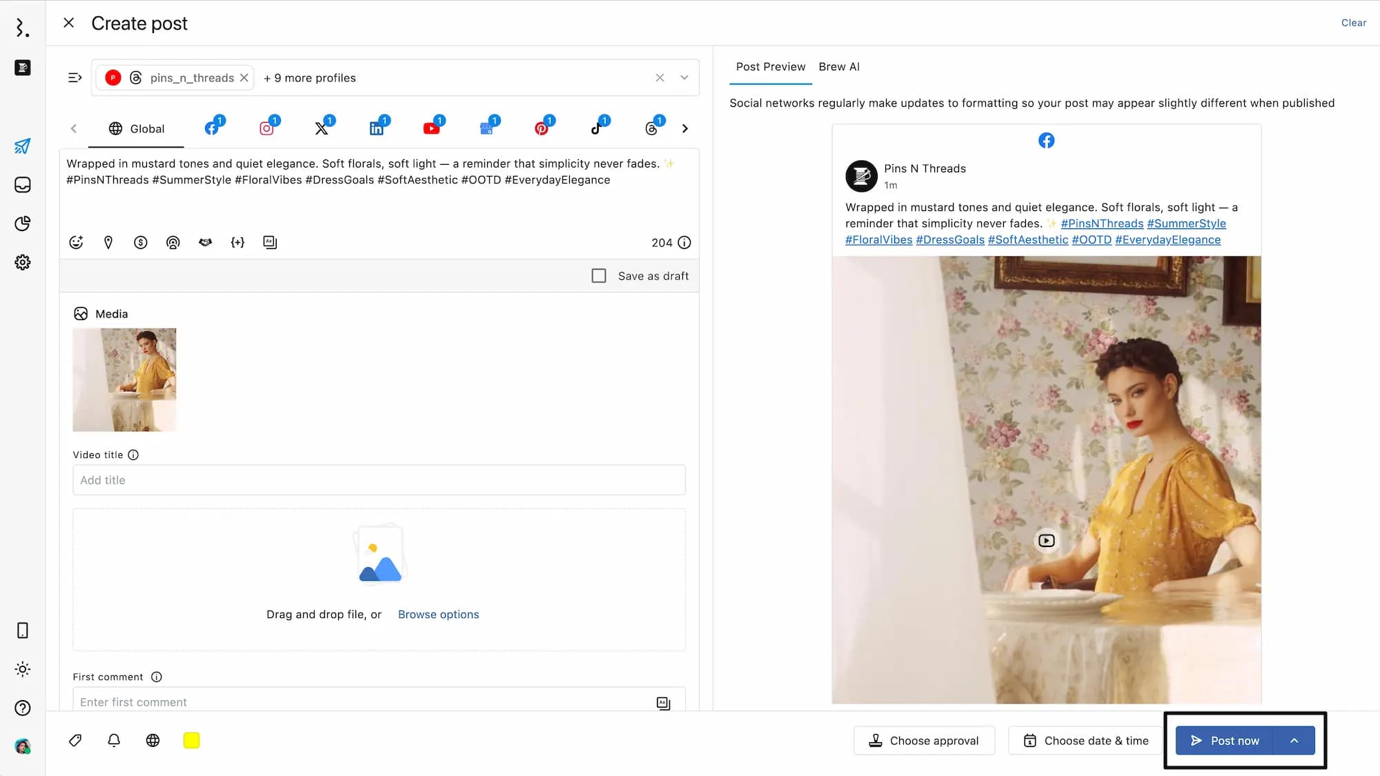 Statusbrewの予約投稿機能を利用することで、事前にコンテンツの公開時間を予約することが可能です。複数の異なるプロファイルやネットワークへの公開を同時に予約できます。Statusbrewを使用して、Facebook、 Instagram、 X (formerly Twitter)、 LinkedIn、Pinterest、 YouTube、 Google My Business、 Threads、TikTokなど複数のプラットフォームへの投稿予約をしましょう。
