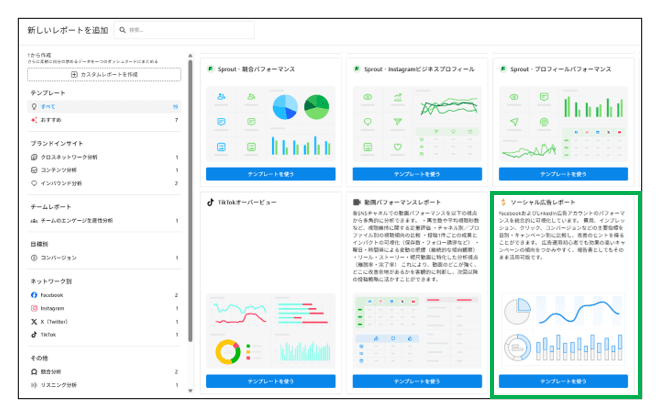 テンプレートは、「ソーシャル広告レポート」を選択してください。