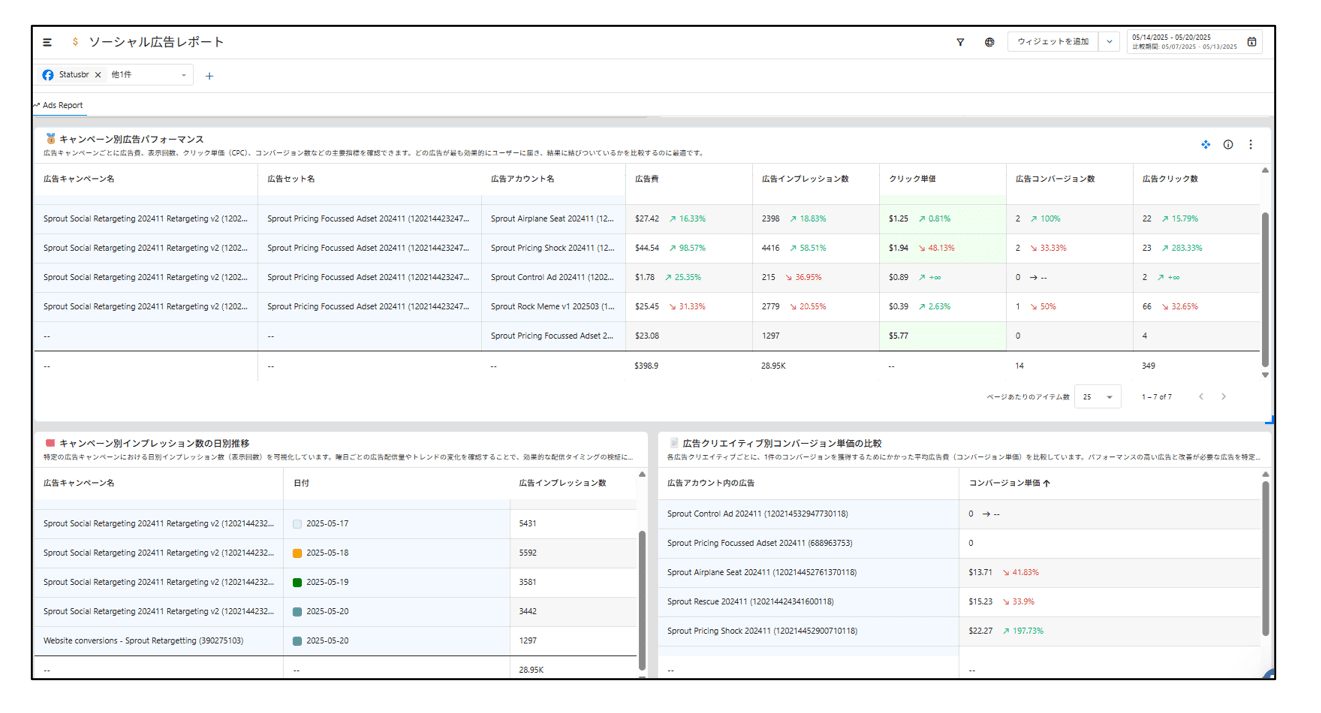 Statusbrewでは、様々な種類のテンプレートレポートをご用意しています。今回はソーシャル広告レポートをご紹介します。