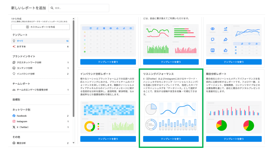 テンプレートは、リスニングパフォーマンスレポートを選択してください。
