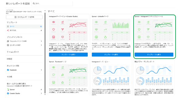 テンプレートは、「Sprout-Instagramビジネスプロフィール」を選択してください。