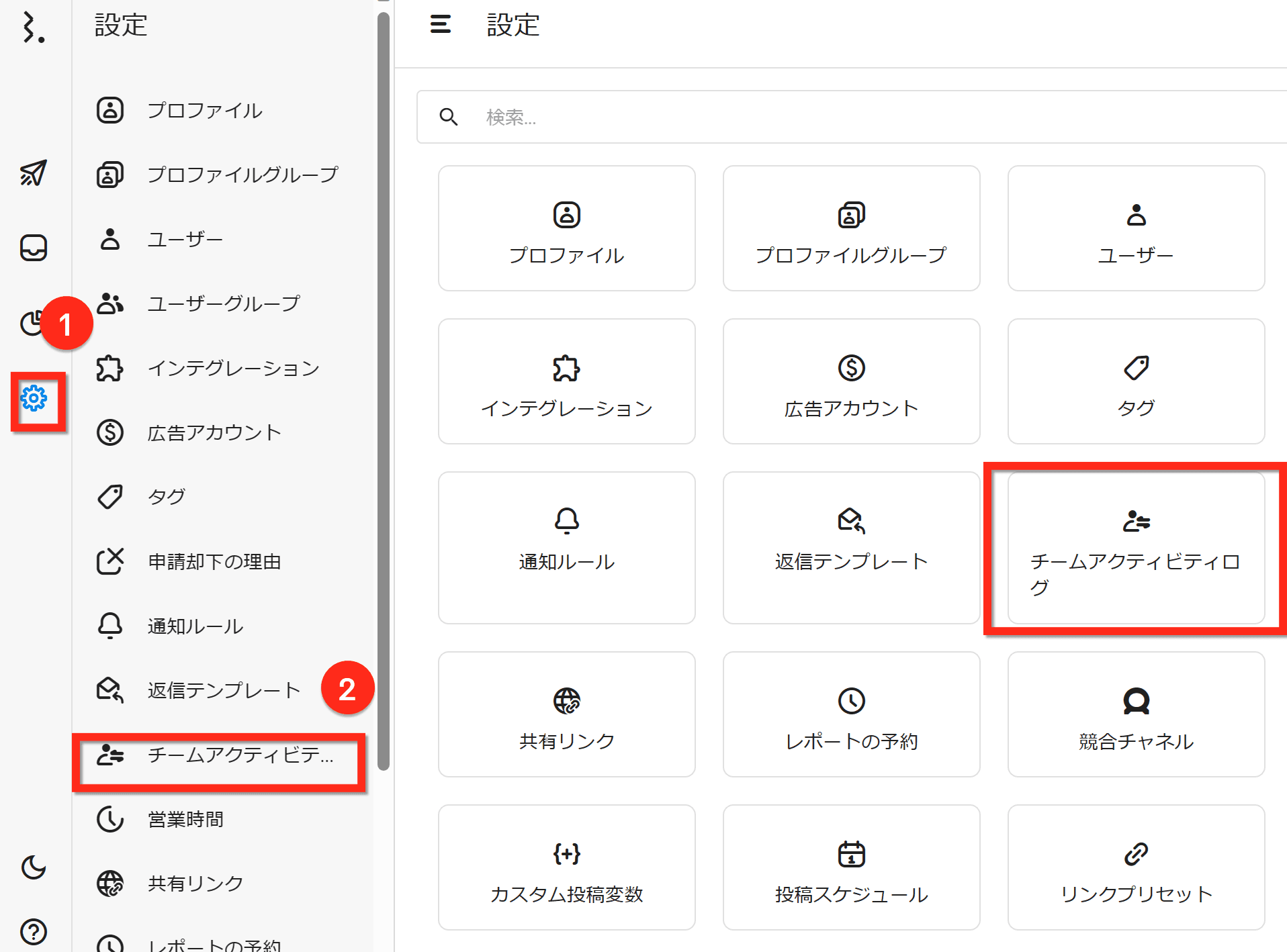 チームアクティビティログは、あなたの企業組織内のすべてのチームメンバーのアクティビティを記録して管理されるための場所です。組織のアカウントのプライマリーオーナー、オーナー、管理者はアクティビティログを使用して、企業のアクションとしてそぐわない、または疑わしいアクティビティをチェックし、SNSの大規模な運営から生じる組織上のリスクを排除できます。SNSは炎上などリスクが多いので、この機能は非常に役に立ちます。