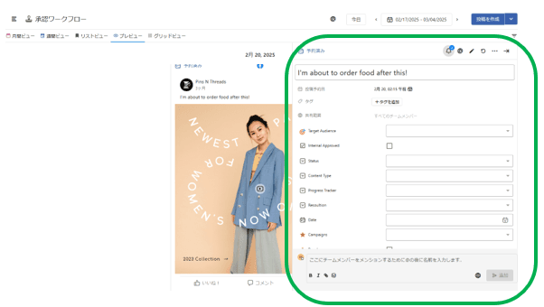 投稿の詳細画面は、プランナーボードで各投稿をクリックすることで表示されます。