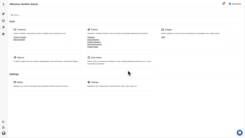 リーチ、エンゲージメントなどのソーシャルメディアの目標達成を支援するとともに、Statusbrewでは CRMとして知られている"カスタマーリレーションシップマネジメント"の内蔵されたサービスを提供しています。ソーシャルメディアのエンゲージメントプラットフォームにソーシャルCRMを直接導入することで、インバウンドリードをセグメント化することや、ソーシャルメディアマーケティングファネルを完成させること、キャンペーンを最大限に活用することに役立ちます。