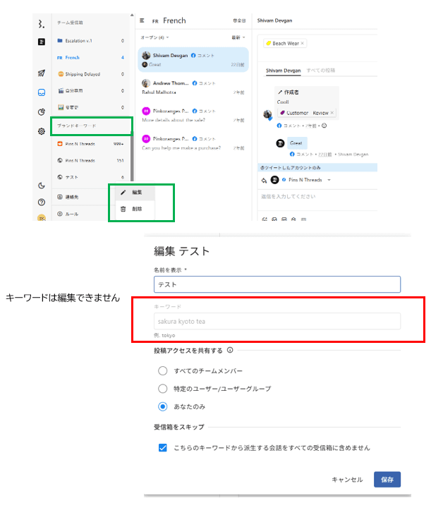 必要なだけブランドキーワードを作成しましょう。ブランドキーワードごとに受信トレイが作成されるので、情報の確認・管理も簡単です。