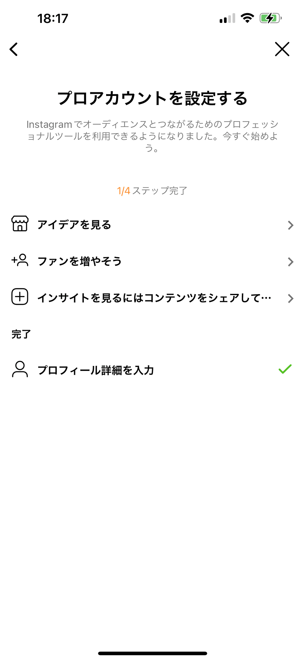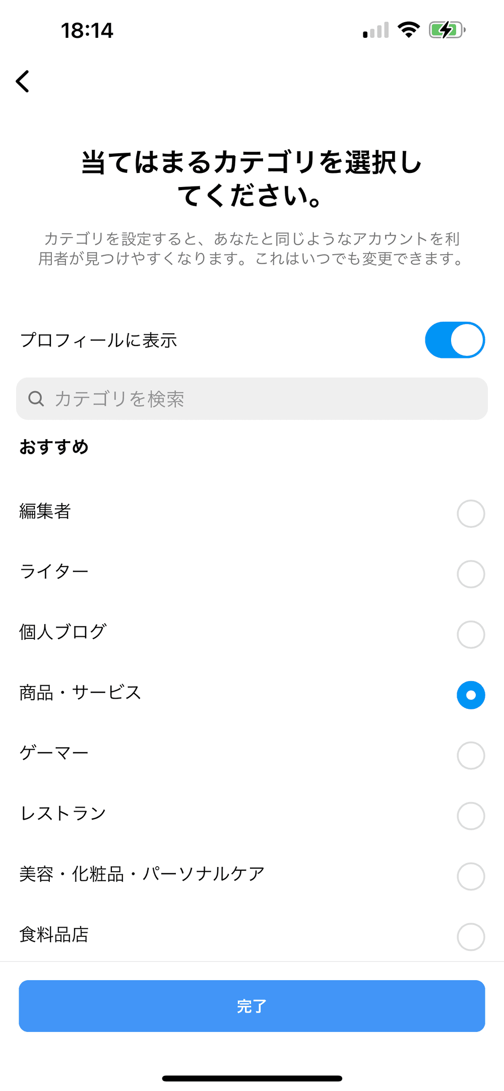 6. プロアカウントの設定完了まであと少しです。プロフィールの詳細やカテゴリなど諸々選択します。
