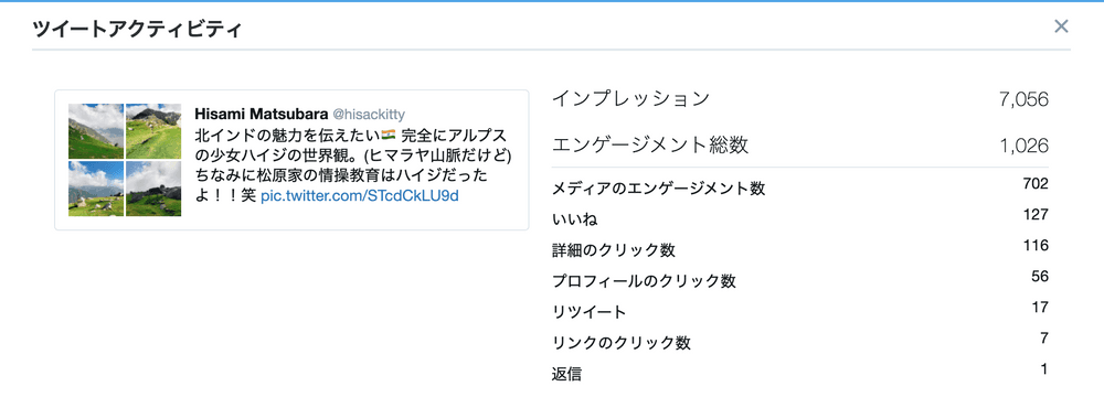 このグラフの下には、タイムラインだけではわからない、そのツイートのデータが表示されます。