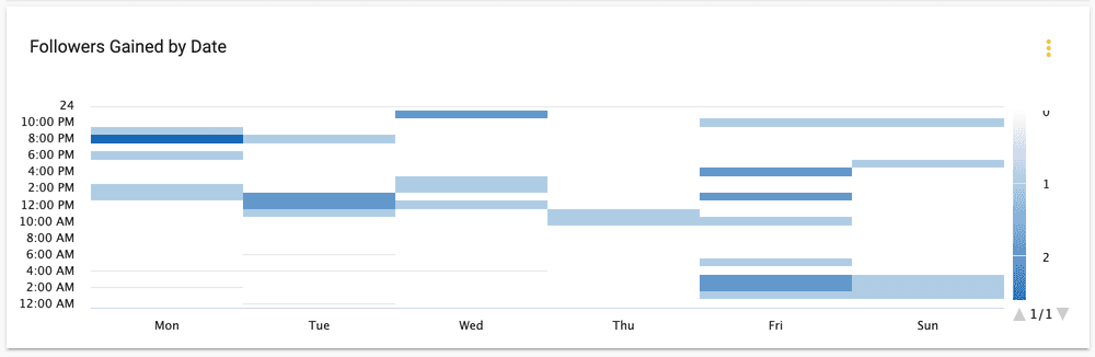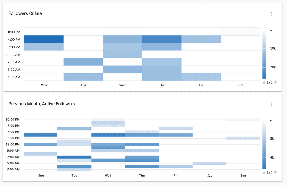 StatusbrewのTwitter分析ツールは、フォロワーが最もアクティブな時間帯を様々な角度から測ることができます。Statusbrew分析機能には、