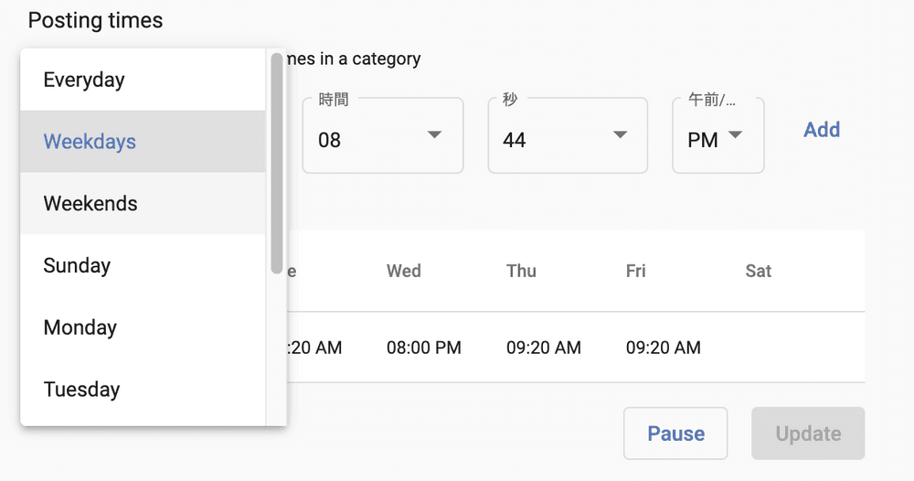 上記のように、「平日の特定の時間帯」 に繰り返し投稿ができるようなカテゴリーももちろん設定できます。
