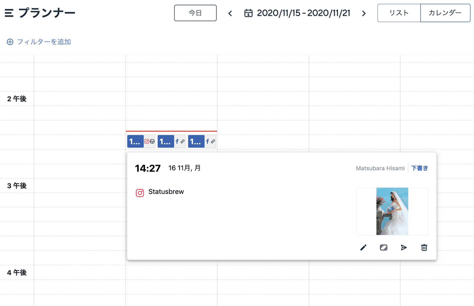 投稿を予約した後から結果の追跡まで、Statusbrewのプランナーと分析レポートで責任が持てます。