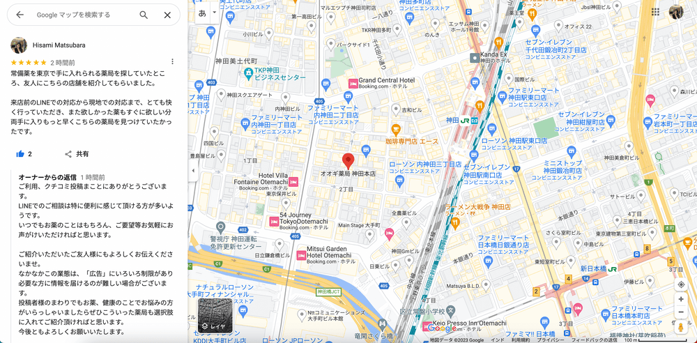 1時間以内に返信のあるGoogleの口コミ返信
