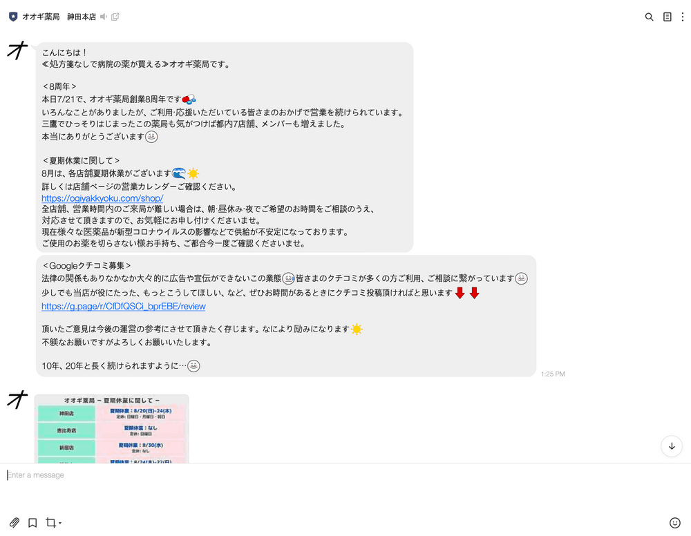 処方箋なしで薬が買える. オオギ薬局の公式LINEメッセージ