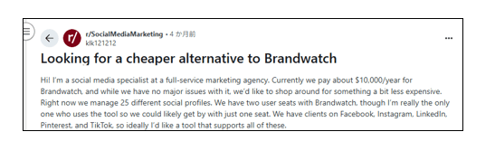 引用:Redditスレッド Looking for a cheaper alternative to Brandwatch