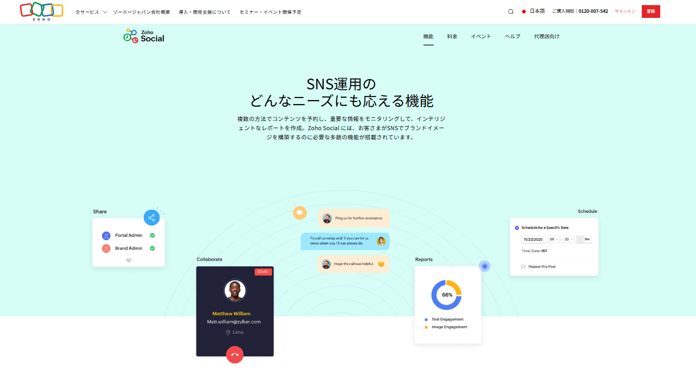 CRMとして有名なZohoはインドに本社があり、日本法人もある世界的な企業です。その製品は多岐に渡り、SNSマーケティングツールにあたるものが、Zoho Socialです。