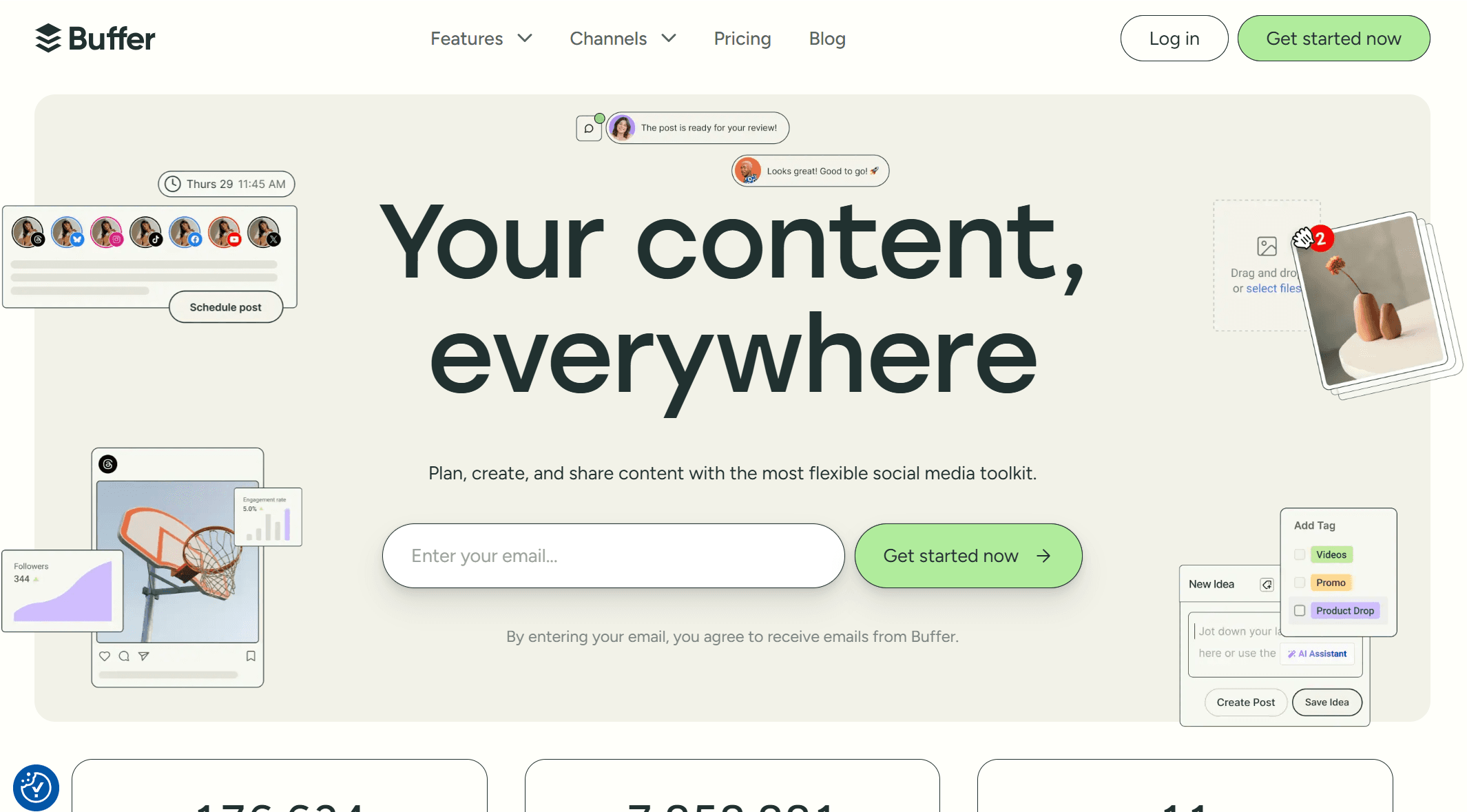 Bufferはそのシンプルさと手軽な価格が魅力ですが、リスニング機能はないため、Brandwatchの代替ツールをお探しの皆さんには物足りないでしょう。ただ、「管理機能は最小限で良い。リスニングツールは他の製品を使う」という場合には、その手頃さから検討してみるのも良いかもしれません。