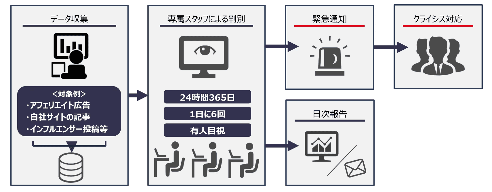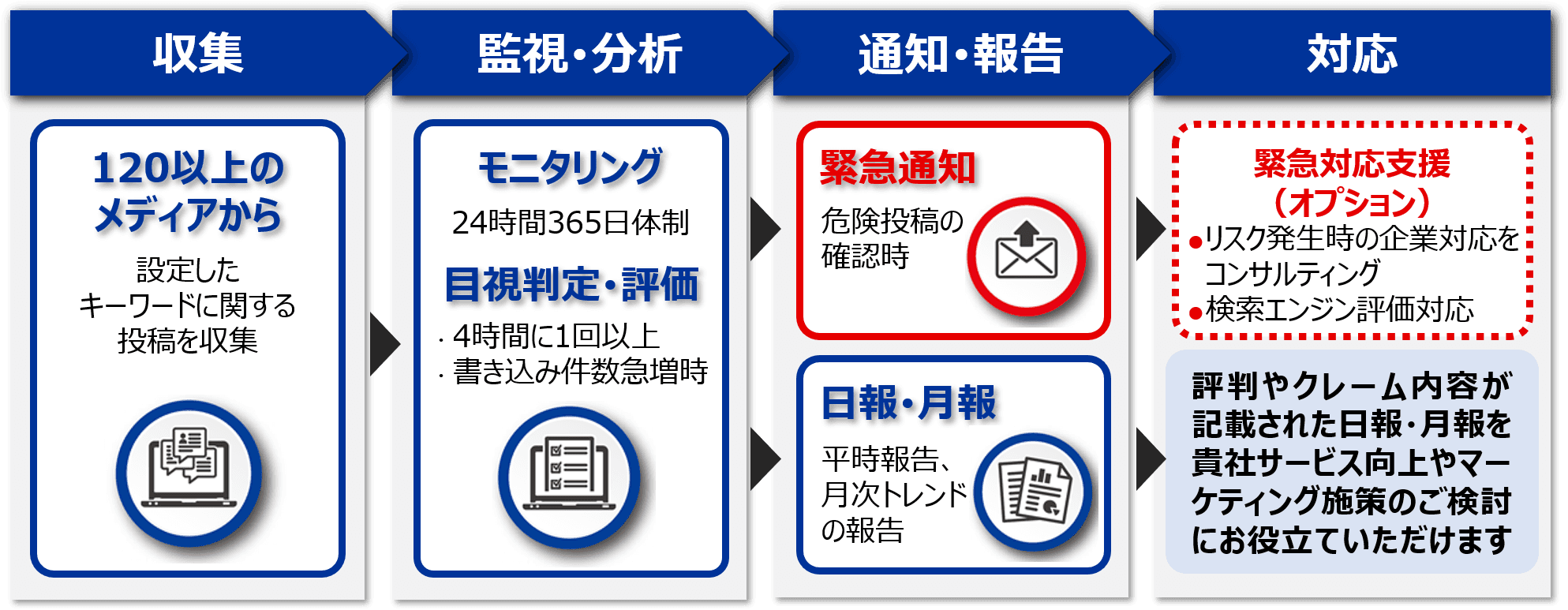 大切なのは、問題が発生する前にしっかりと見つけ出し、迅速に対処すること。早期に対応することで、風評被害を防ぎ、企業や商品の信頼性を守る役割を果たします。