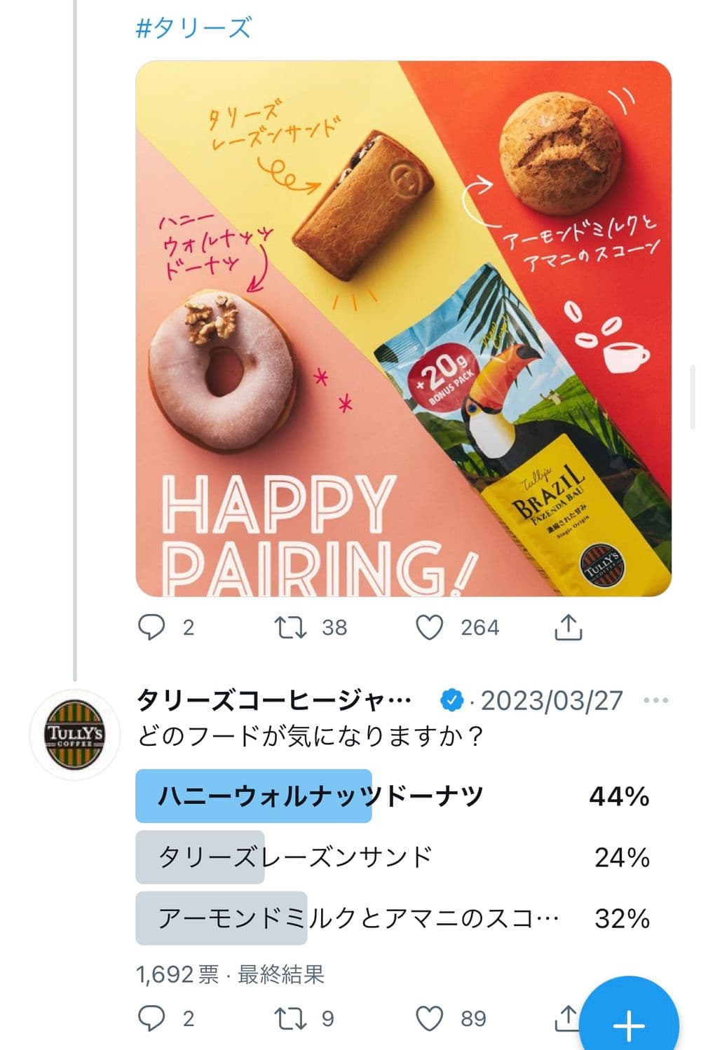 タリーズコーヒージャパンはTwitter上で定期的に投票を行い、消費者意識を確かめています。これらの投票によって、1度に多くの消費者嗜好に関する情報が得られると同様に消費者にとっては投票に参加することができブランドと楽しく関わることができます。