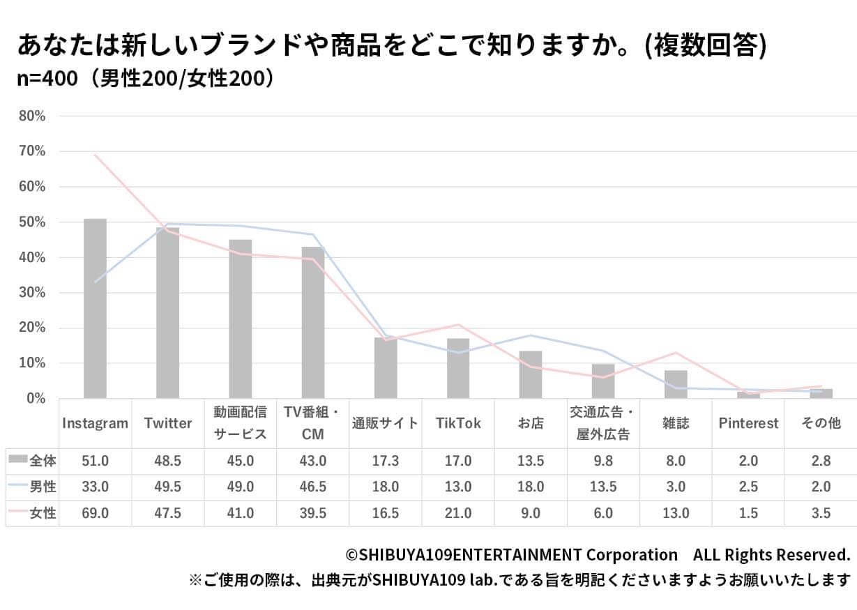 この記事を読んでくださっている皆様も重々承知のことだと存じますが、多くの人にとって気軽に検索することができるようになり、自分自身で調べることが日常となった今日では、全ビジネスにとってローカルソーシャルメディアの重要性が増してきています。顧客はソーシャルメディア上で積極的にレビューを探したり、購入しようとするビジネスに関する情報を偶然目にすることがあります。特に若者の間ではその傾向が顕著です。若者マーケティング研究機関『SHIBUYA109 lab.(読み:シブヤイチマルキューラボ)が2021年に15~24歳の若者400名に行った調査によると、「あなたは新しいブランドや商品をどこで知りますか」という質問に対し、トップ3の回答は「Instagram(51.0%)」、「Twitter(48.5%)」、「動画配信サービス(45.0%)」 とソーシャルメディアが占めるという結果になったと言います。この結果から、意思決定はおろかその前の認知・認識段階からソーシャルメディアの役割が大きくなっている事がわかります。