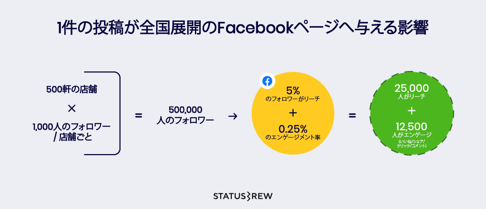 しかし、平均1,000人のフォロワーを持つ500の拠点がそれぞれあれば、拠点全体で50万人のフォロワーを持つことになります。