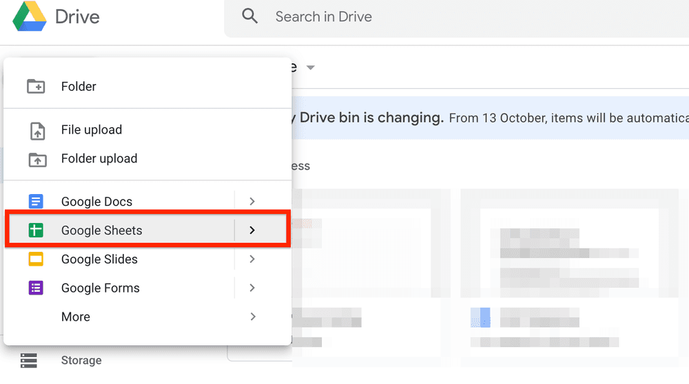 カレンダーを手動で作成するには、Googleドライブにログインし、[新規]をクリックして新しいスプレッドシートを作成します。 次に、タイトルをクリックして名前を変更します。