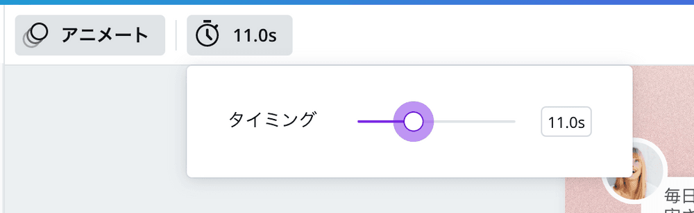 5.アニメーションメニューの隣にある時計マークをクリックして、各ページのタイミングを調整します。