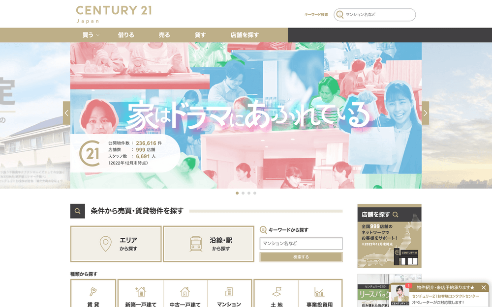 例2)世界78ヶ国・地域に6,800店舗!国内に999店舗!不動産CENTURY21