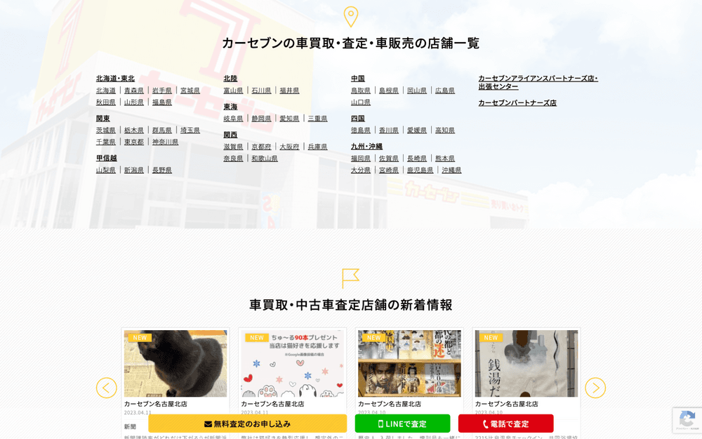 例1)全国に150店舗以上自動車販売、買取を行うFCカーセブン
