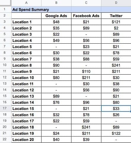 前述のように、複数の拠点で複数のキャンペーンを手動でレポートする場合、各プラットフォームからデータを抽出し、手動で計算する必要があります。