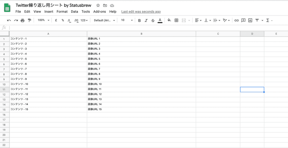 任意で画像も追加したい場合は、C列に画像URLを入力して完了です。
