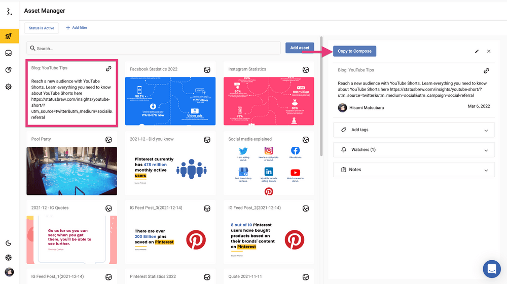 を保存してテンプレート化できるソーシャルメディア専用のリソース管理ツールです。
