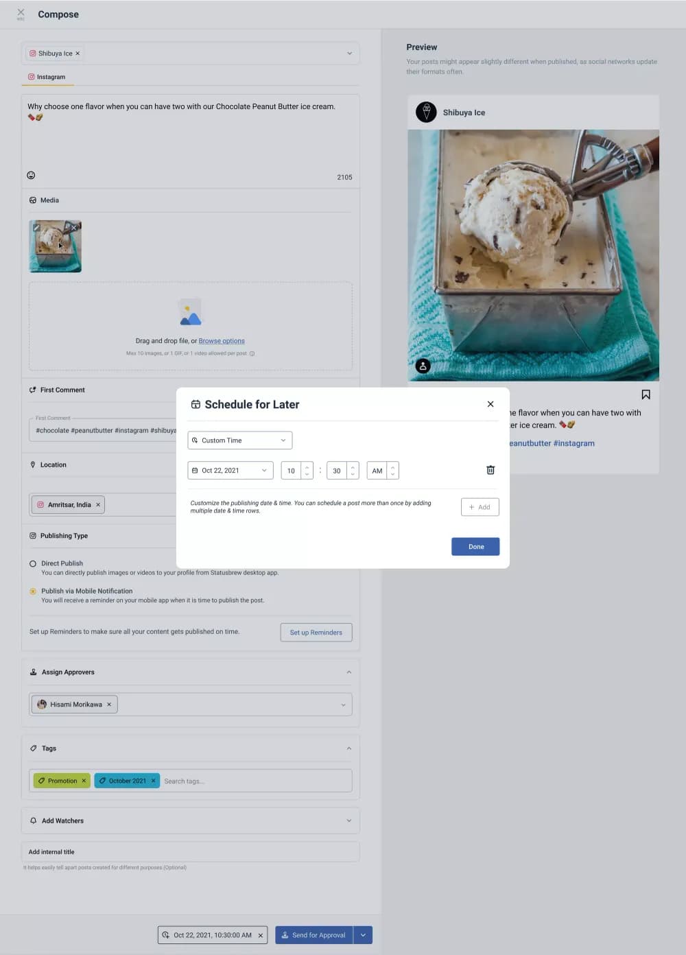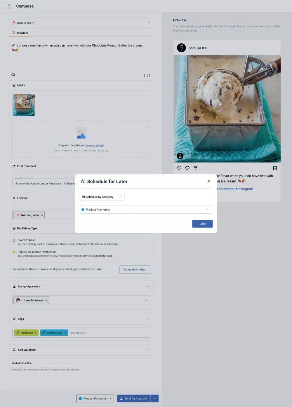 Statusbrewのカテゴリベースの予約投稿機能は、戦略的にそのコンテンツを自動的に繰り返し発信できるように設計されています。SNS上でコンテンツが再共有されるたびに、新たなリーチを得ることができるようになります。