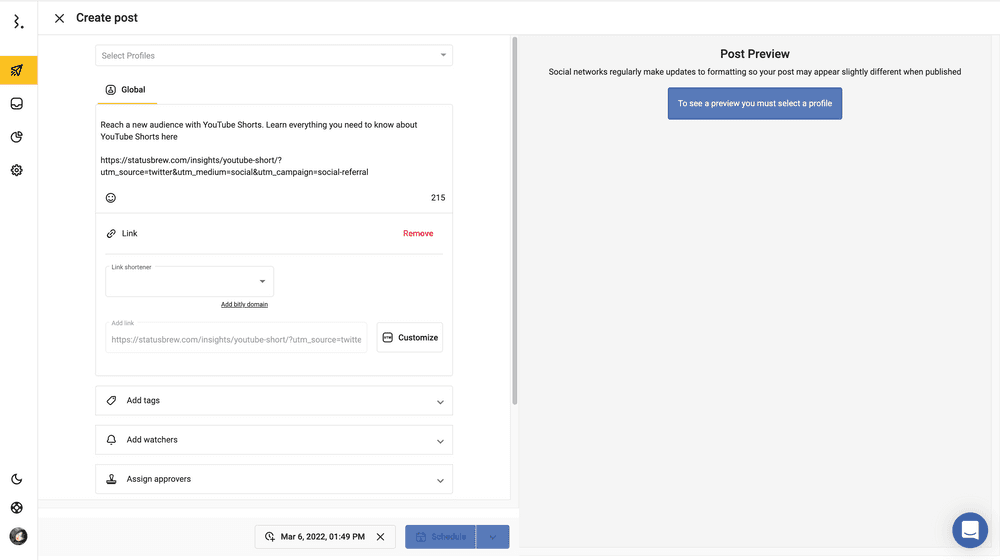下記の画像はコンポーズと呼ばれるStatusbrewの予約投稿エディターです。