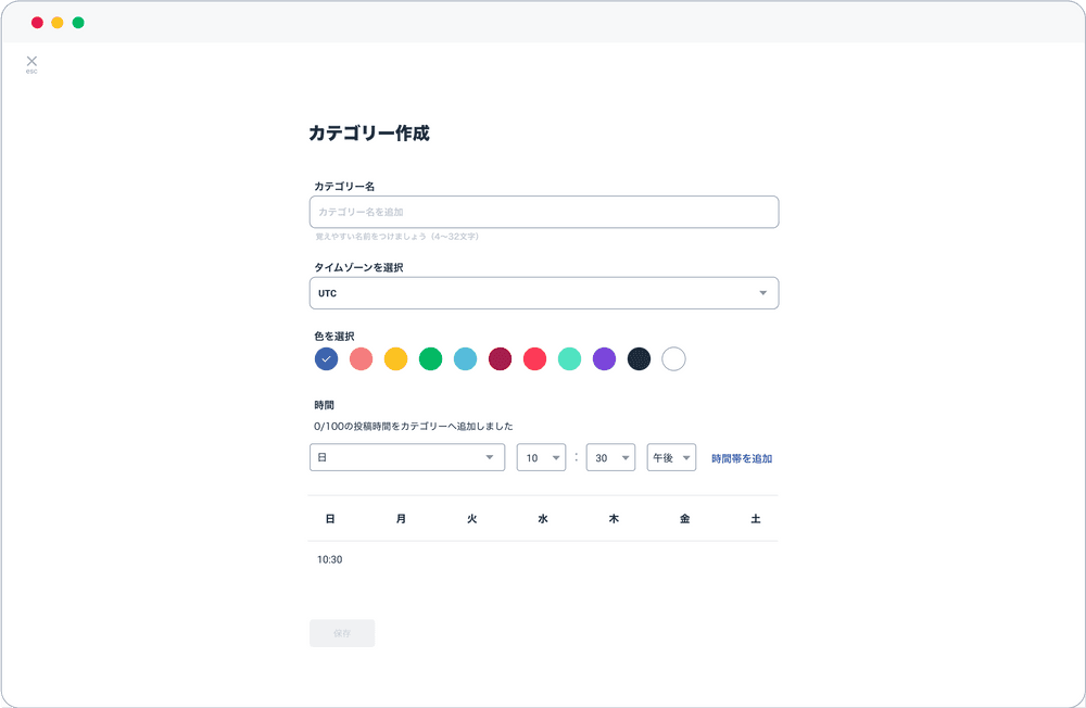 「コンテンツをカテゴリー化」とは、時間枠、ソーシャルネットワーク、コンテンツの種類に基づいて、コンテンツの予約方法を振り分けることです。