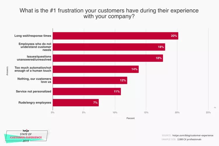 同様に、問題を解決できないことも、質の低いカスタマーサービスの特徴です。いかにうまく対処するかで、顧客がどれだけ良い体験をできるかが決まります。最初の方のタッチポイントで問題を解決できれば、ほとんどのお客様はあなたのビジネスに対してポジティブな印象を持つでしょう。しかし、1回目や2回目のタッチポイントでこれを実現できない企業は、ネガティブな顧客体験を提供している可能性が高いと言われます。