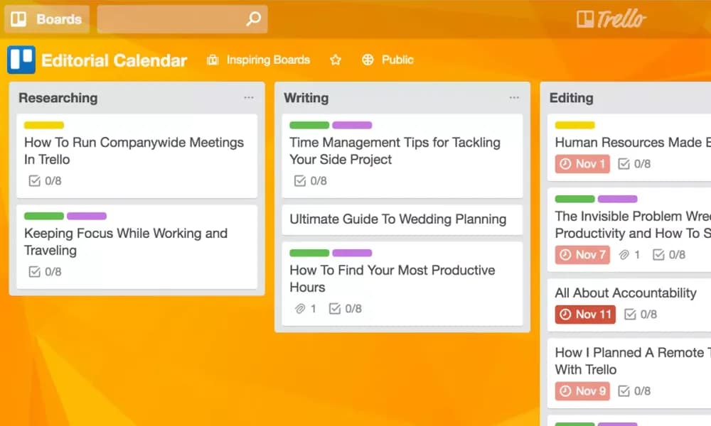 タスク管理ツールで有名なTrelloですが、ソーシャルメディアのコンテンツカレンダーとしても有能です。