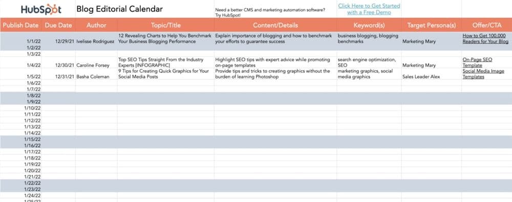 引用:総合マーケティングツールHubspotが無料配布するスプレッドシートはこちらから