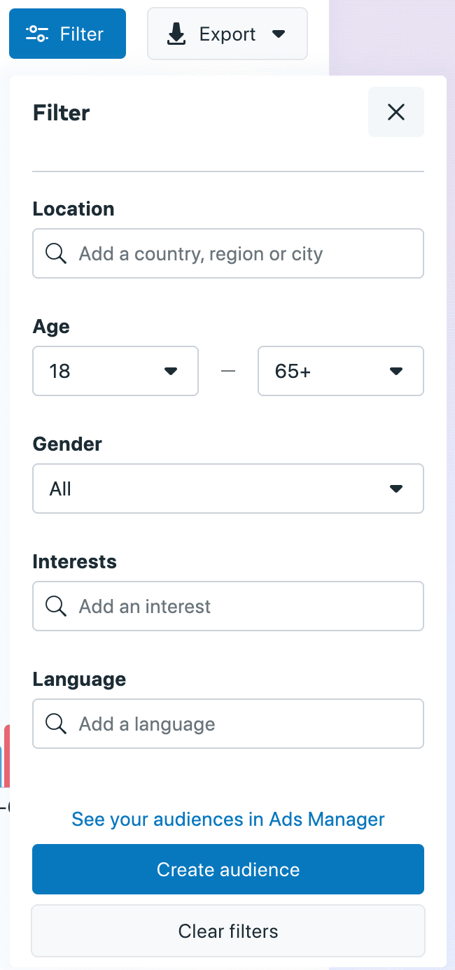 このツールの真の強みは、FacebookとInstagramのプラットフォーム全体のオーディエンスを表示し、特定のセグメントを詳細に調査できることです。