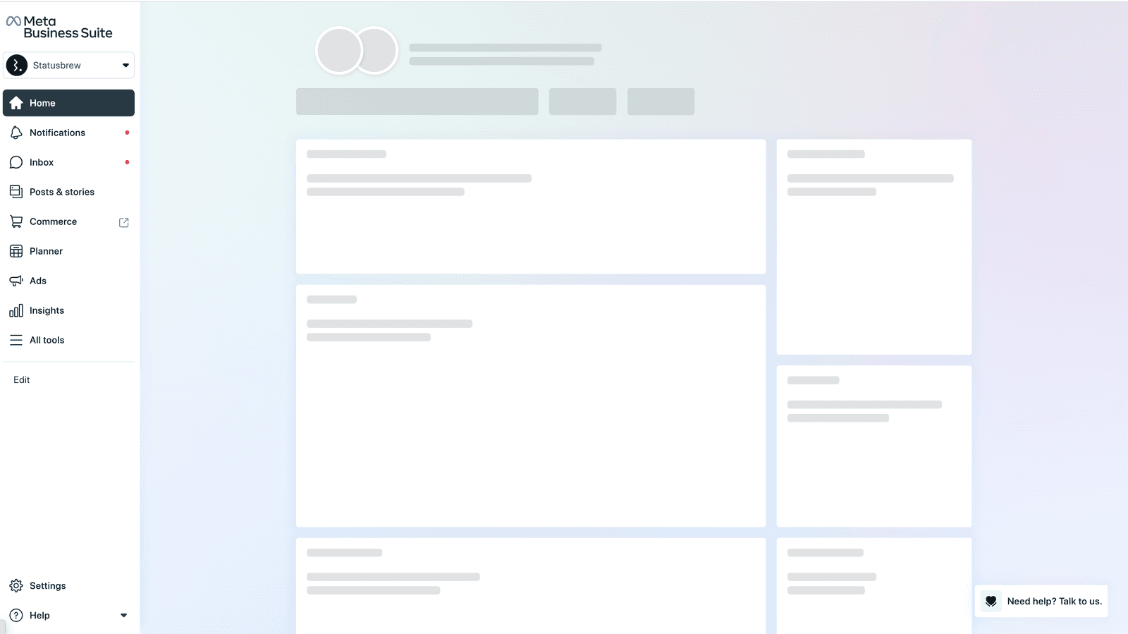 あなたのFacebookアカウントにログインし、左上にすでにMeta Business Suiteメニューがあるのでクリックすると、Meta Business Suiteのページが表示されます。