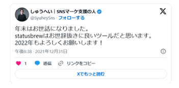 こんにちは、ソーシャルメディアマーケティングツールStatusbrewです!