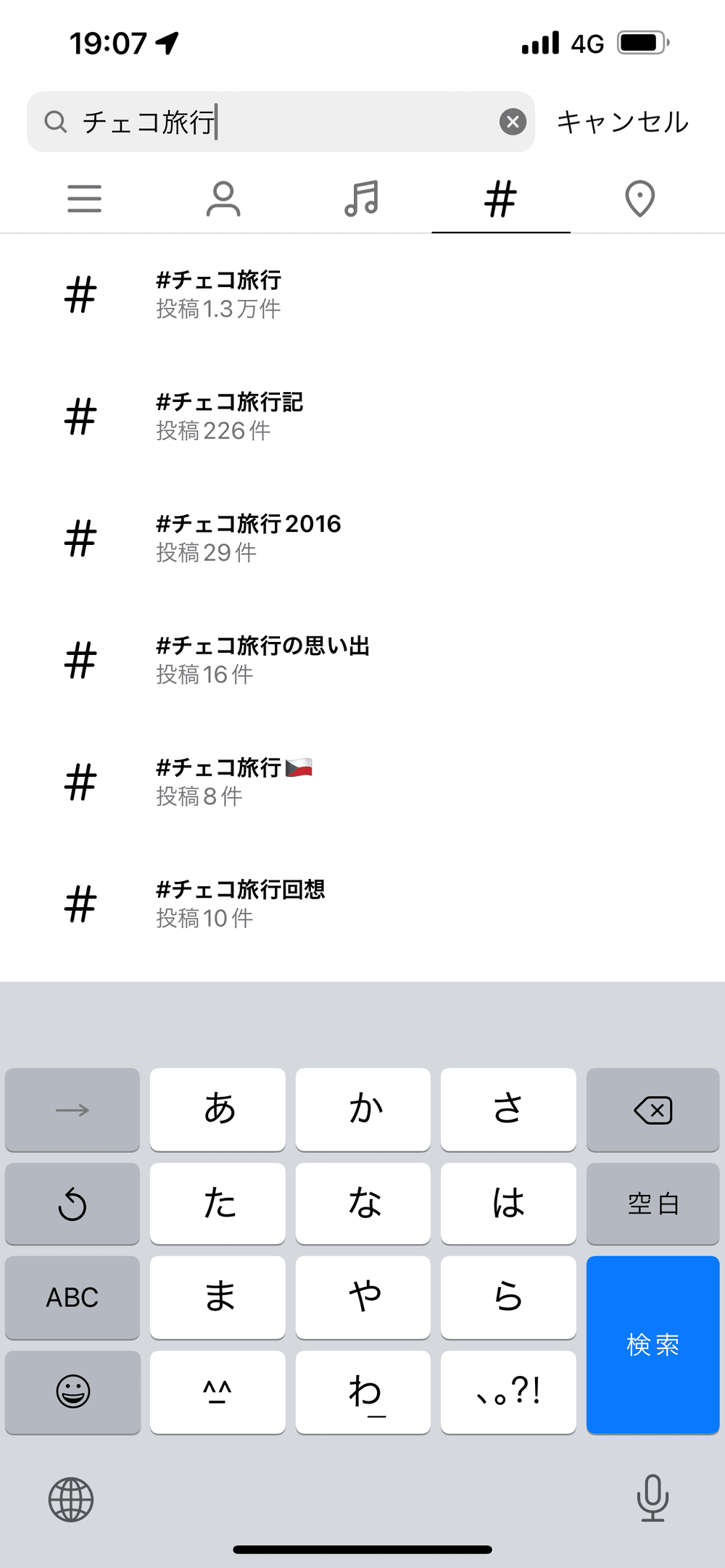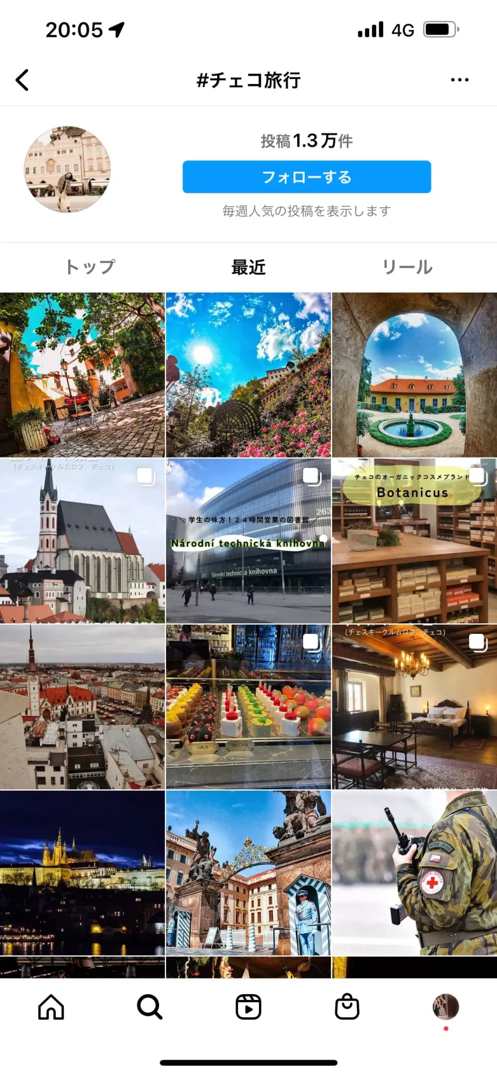 対して、右手に「ヨーロッパ旅行」という広範囲(ヨーロッパには何十もの国がありますよね)すぎるキーワードではなく、ヨーロッパの中からさらにニッチな「チェコ旅行」に絞ってみました。ヨーロッパ旅行に比べて、このハッシュタグを使用した人が少ないため、そのハッシュタグがあまり人気がないことを示すサインである可能性がありますし、ニッチに入り込めるチャンスと言われていました。