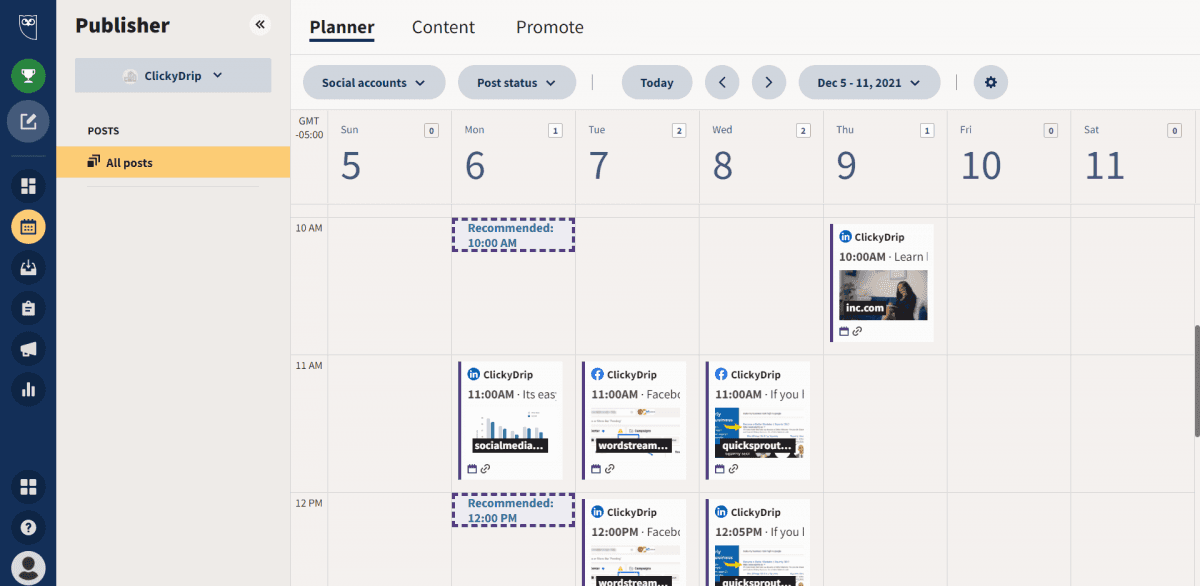 このカレンダーには同様のフィルタリング機能があり、ネットワークタイプや投稿ステータスごとに分けて表示できます。