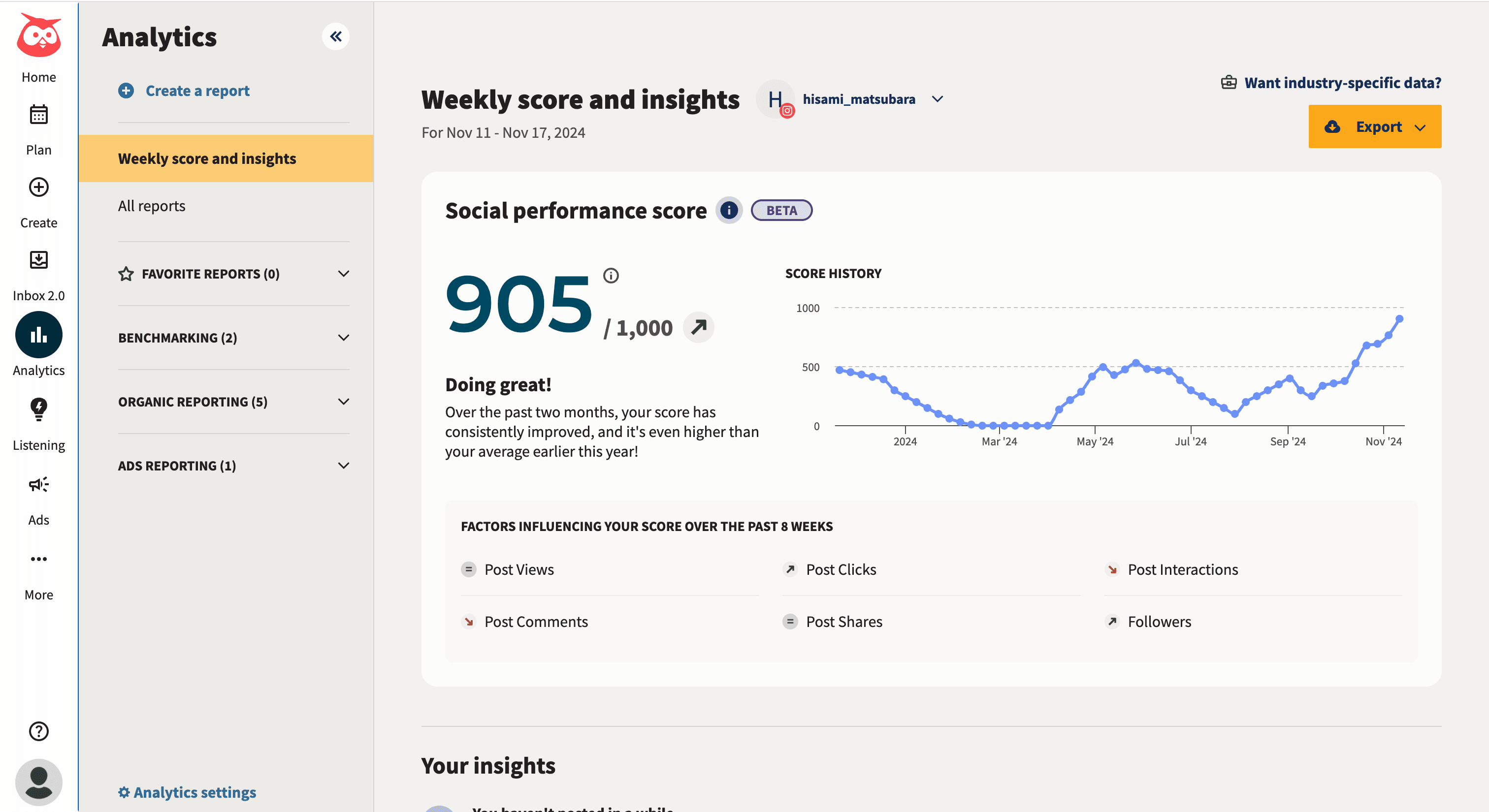 ポイント②投稿の直近のパフォーマンスと「未来の改善」につながるレコメンデーション