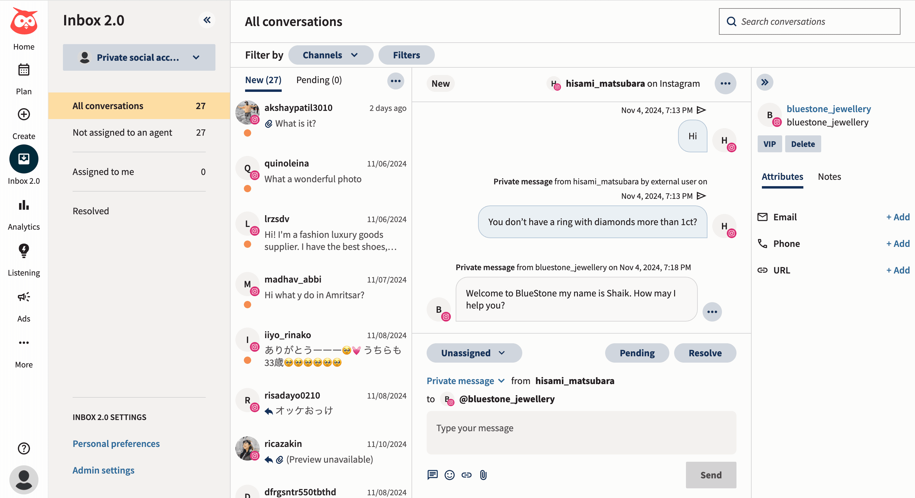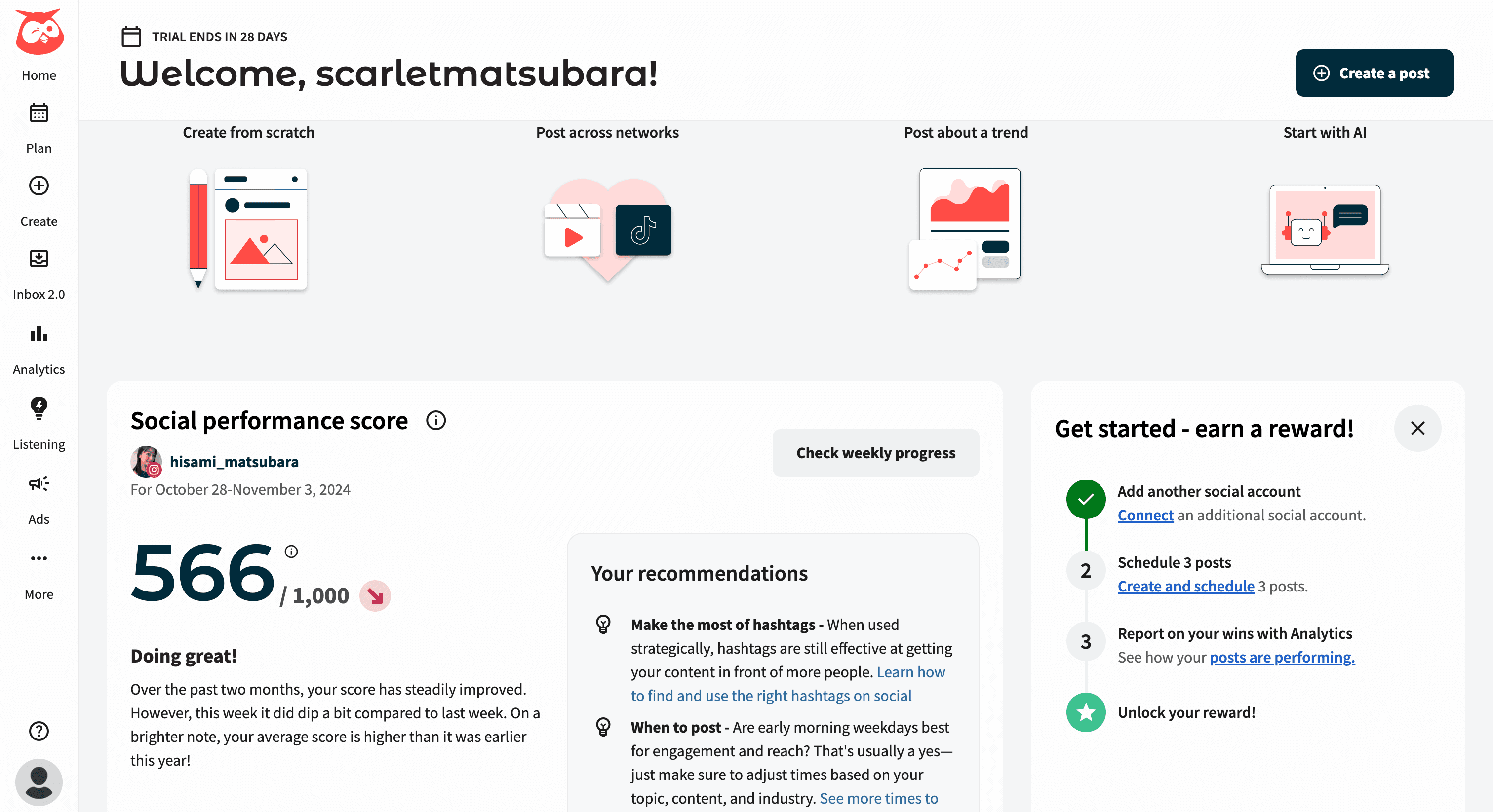 大規模なチームや複雑な顧客対応が必要な企業には有用ですが、小規模チームにとってはオーバースペックになる可能性があります。Hootsuiteのように一元化された管理の方が、シンプルで使いやすい場合もあるでしょう。
