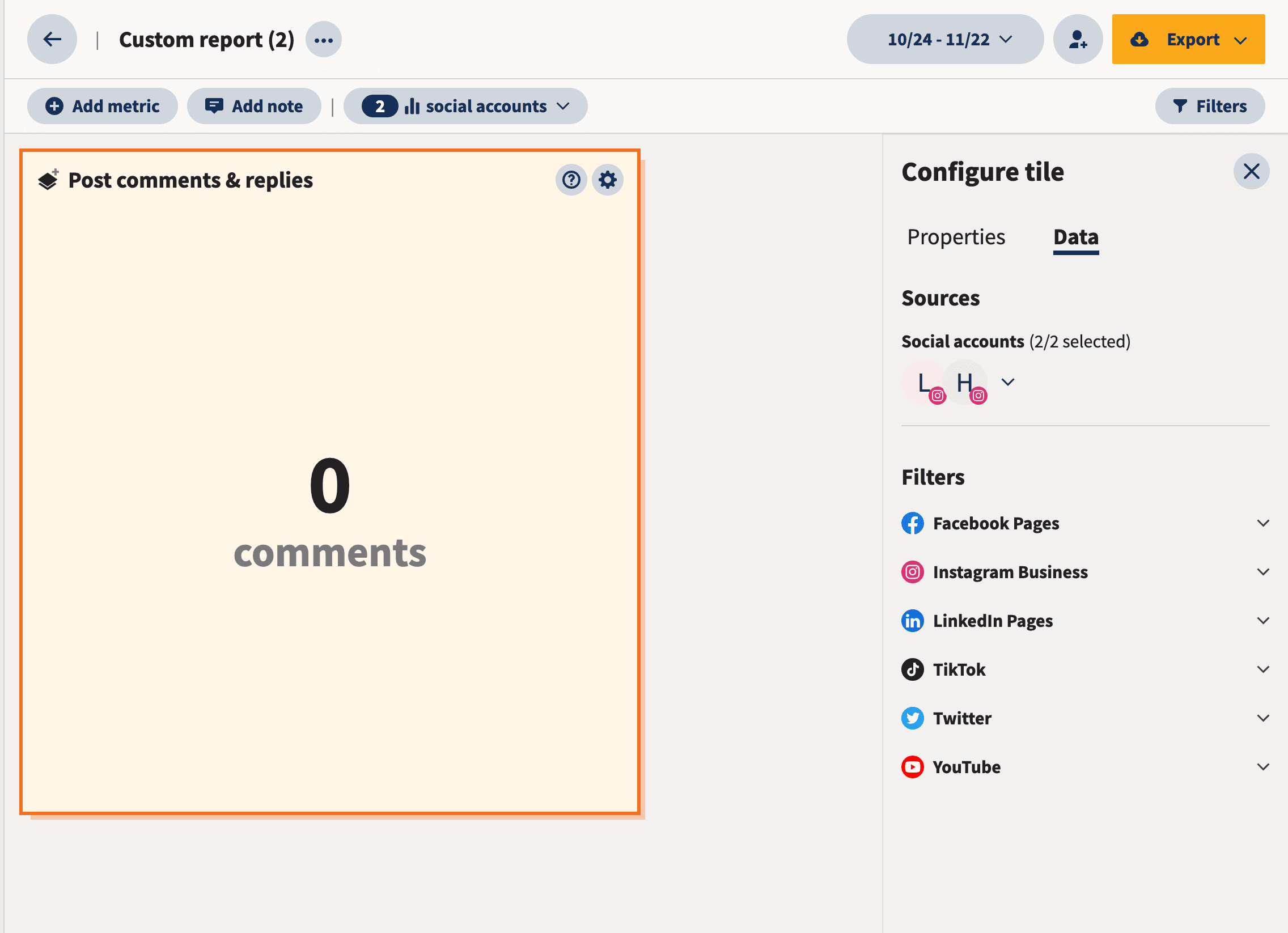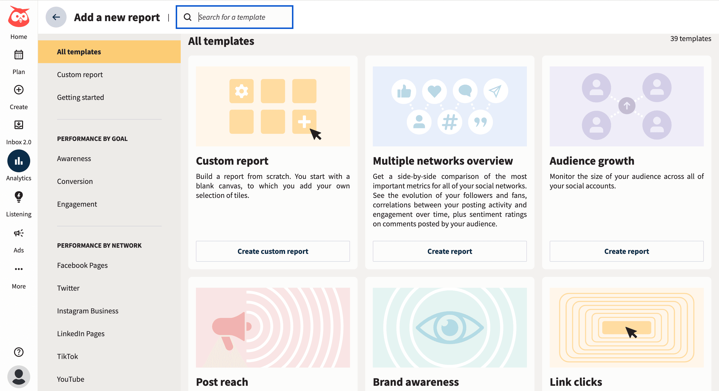 Hootsuite経由かどうかに関わらず、投稿、アカウント、その他のアクティビティのデータを収集・表示します。