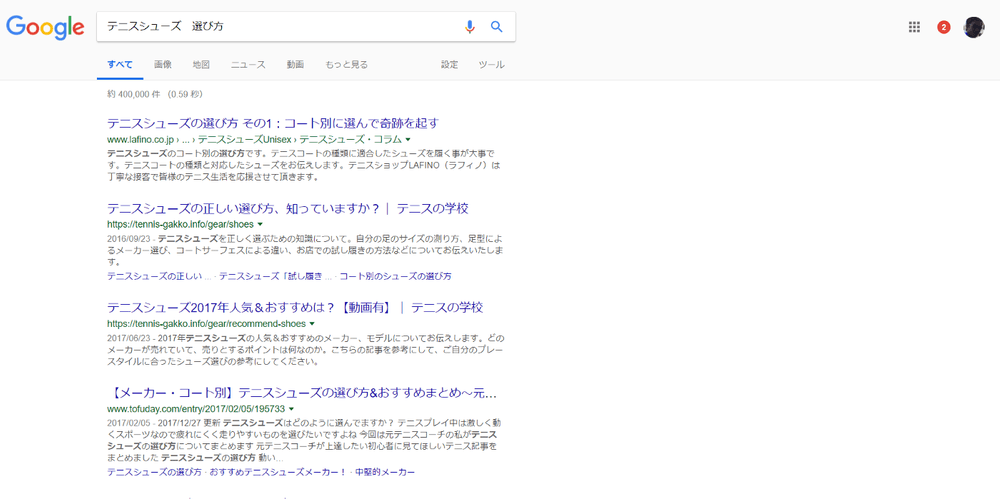 もちろん、ライバルがいないわけではありません。「テニスシューズの選び方」で検索すれば、すでに多くの人がそのトピックについてブログを書いていることがわかります。ですから、トピックは、なるべく自分がよく知っているものにしましょう。ほかのサイトに書いてあるようなことだけでなく、自分じゃなければ書けないことを書ければ、サイト訪問者は自ずと増えていきます。