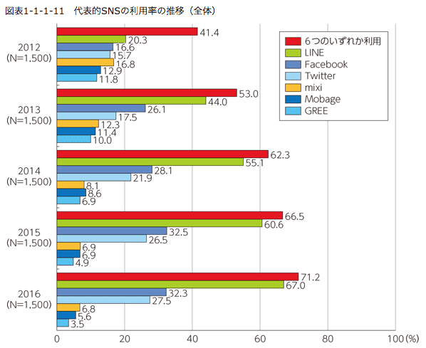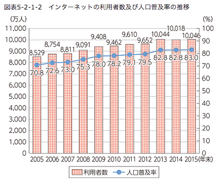 データが少し古いのですが、2015年末時点で人口普及率が83パーセントとかなり高いことが伺えます。