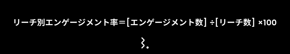 リーチ別エンゲージメント率 = 1投稿あたりの総エンゲージメント数 ÷ 1投稿あたりのリーチ数 × 100