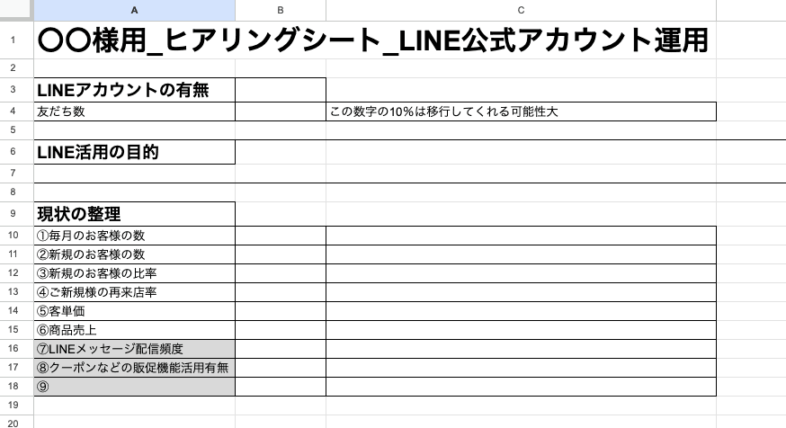 LINE公式アカウントヒアリングシート例