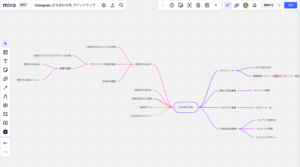 ・インスタグラム運用打ち合わせ用マインドマップ例