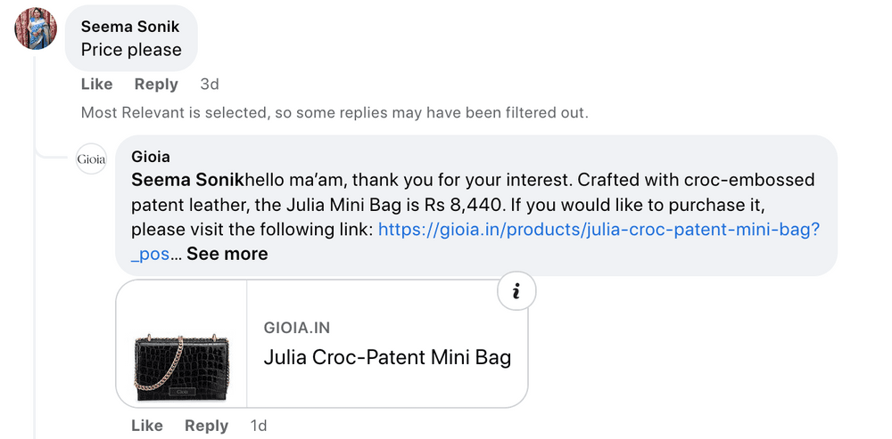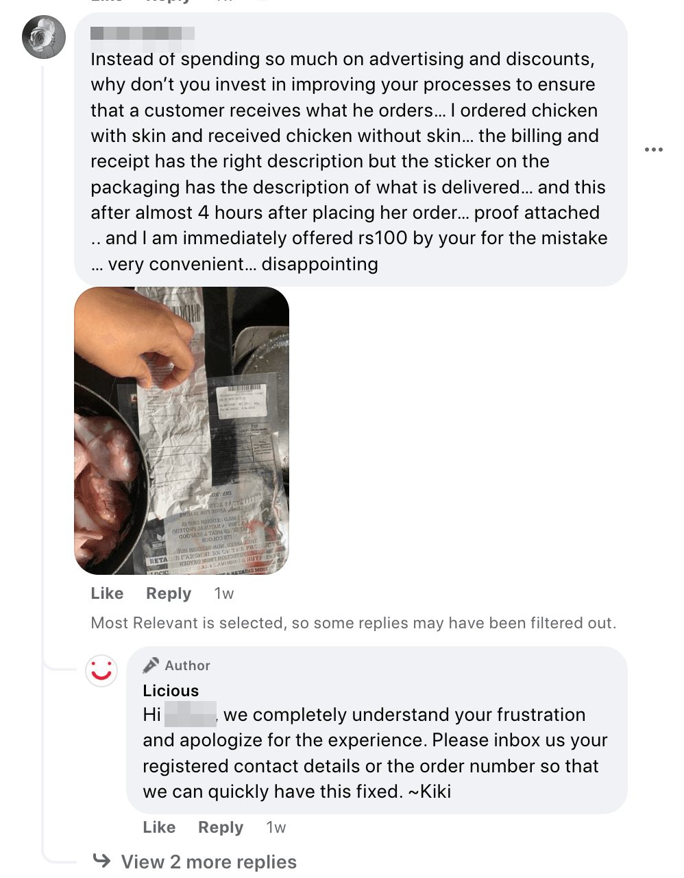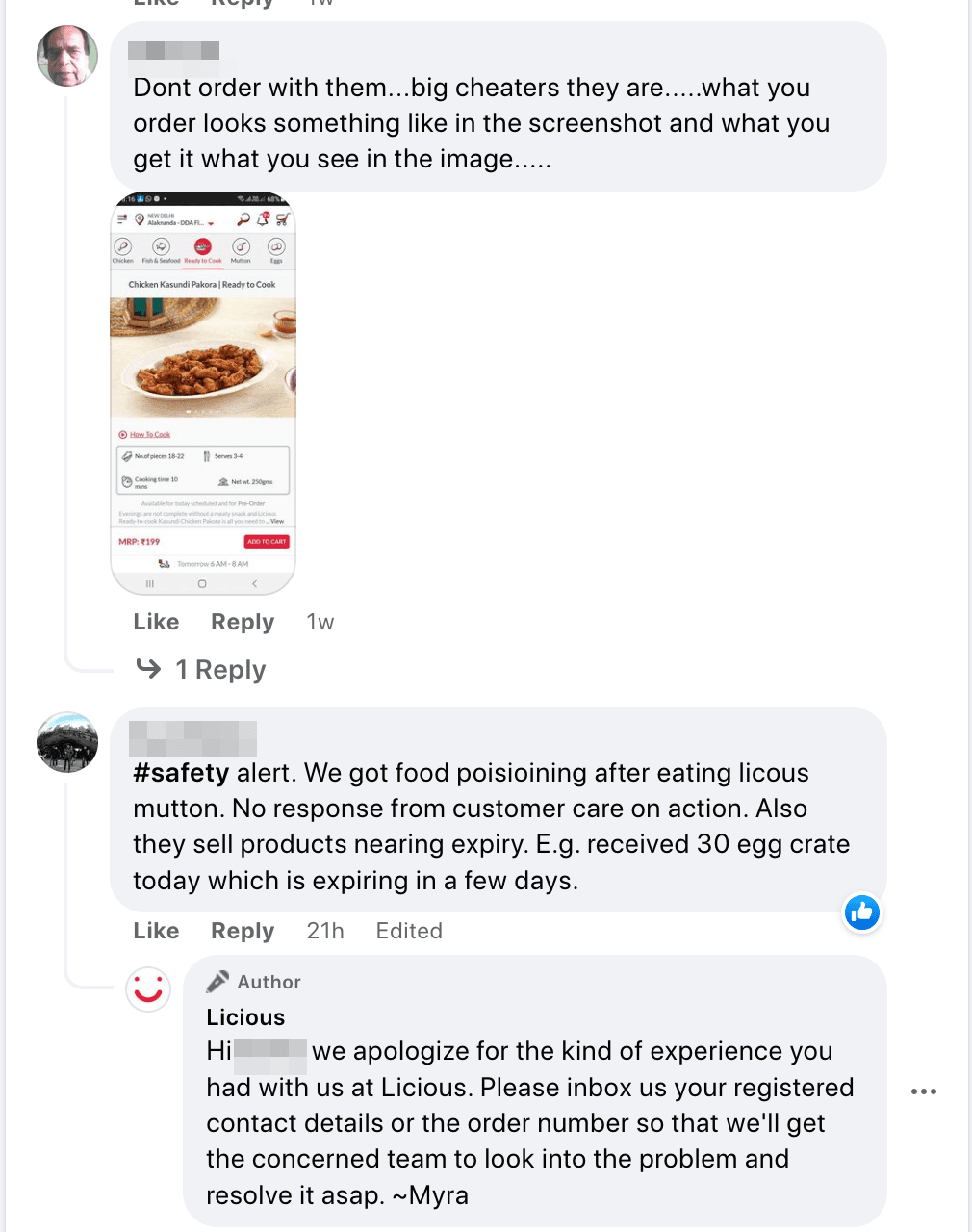 インドのオンライン食肉マーケットプレイスであるLiciousの広告投稿やオーガニック投稿を見てみると、たくさんのコメントがついています。